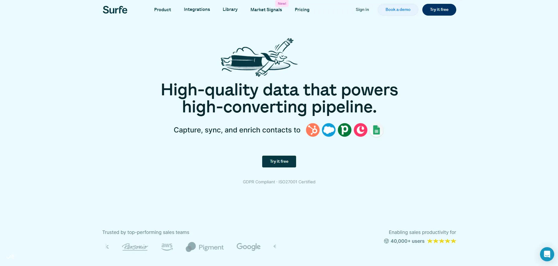 Surfe operates as a Chrome extension that syncs LinkedIn profiles directly into CRM systems with contact info capture. The tool specializes in LinkedIn-based prospecting and real-time enrichment for social media outreach campaigns, focusing on seamless data transfer between platforms.