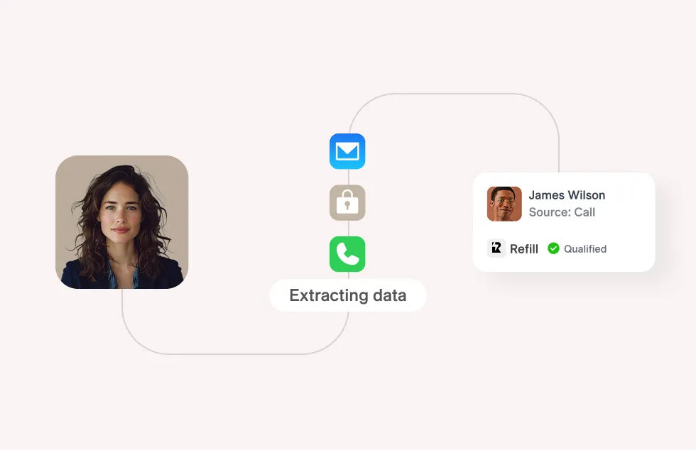 Data flows in and results flow back. Every interaction writes to the systems your team already uses.