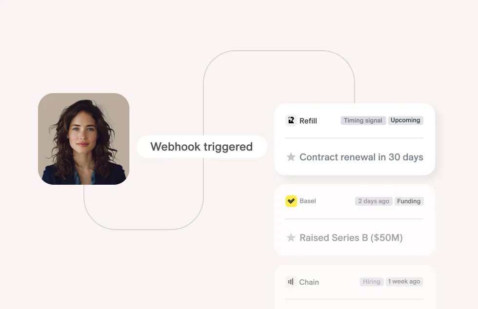 Trigger workflows directly from CRM events, product signals, or any system with an API. No iPaaS layer required.