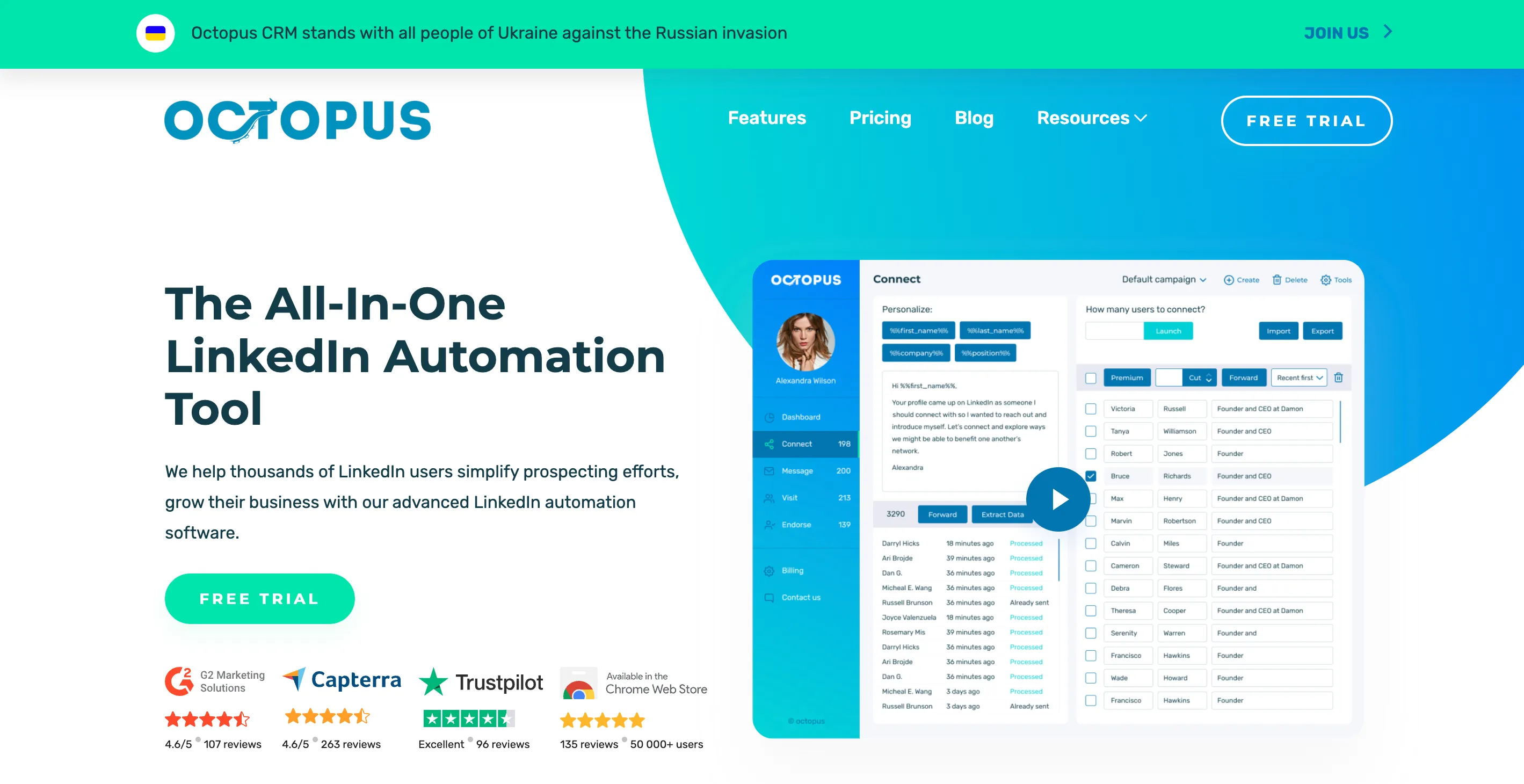 7. Octopus CRM: Simplified LinkedIn Automation System