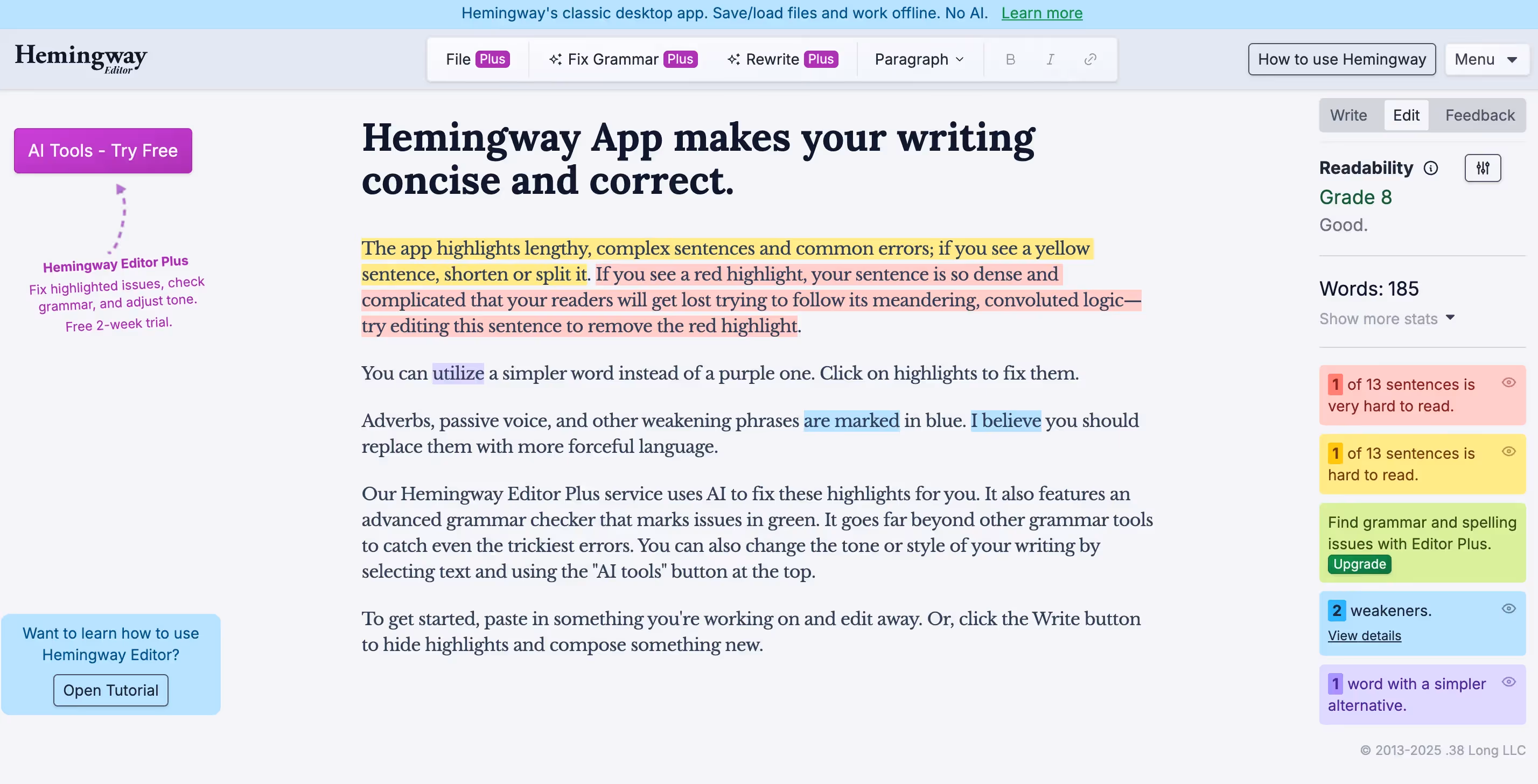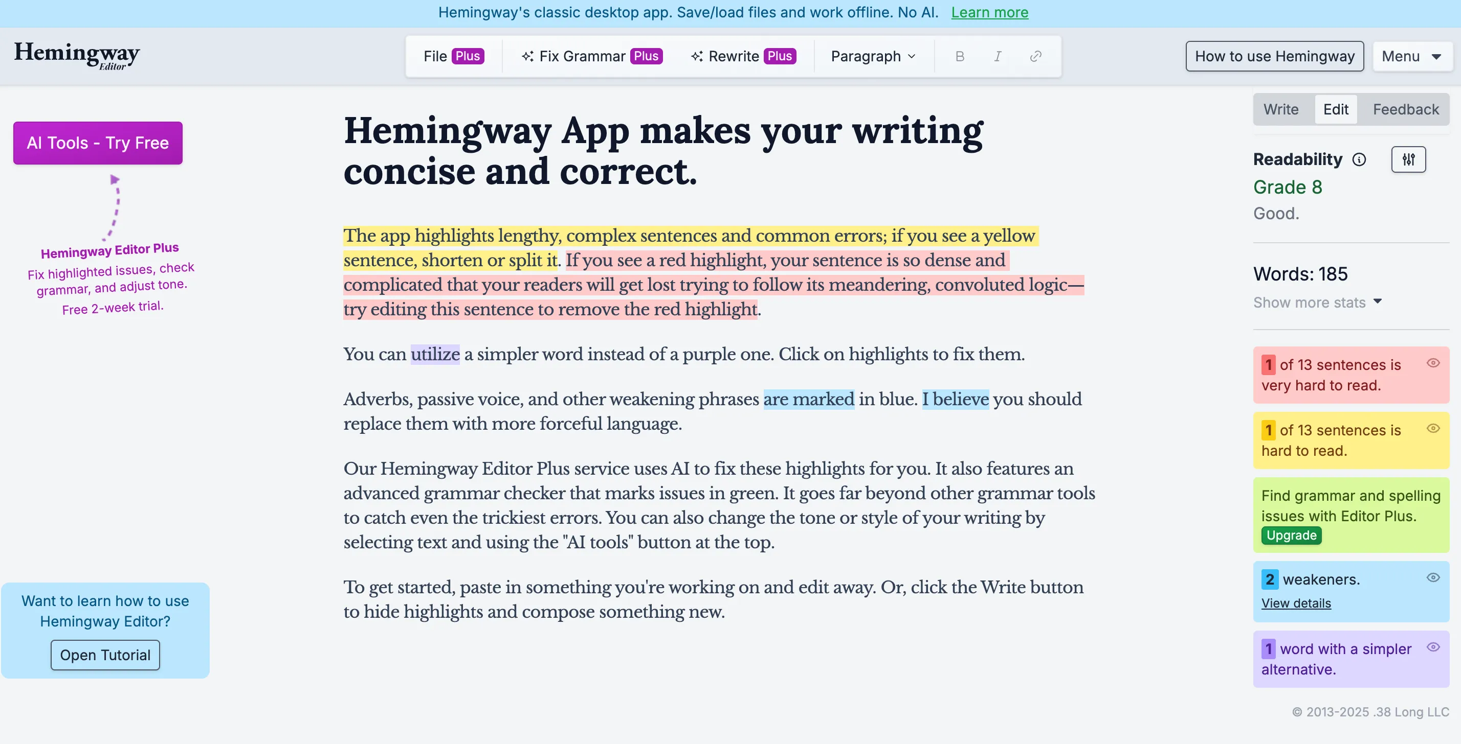 For marketers producing blog posts, newsletters, or landing pages aimed at broad audiences, Hemingway ensures writing stays accessible. Its limitation is rigidity, sometimes oversimplifying prose that should retain nuance. Still, for lean teams or freelancers, Hemingway is an invaluable editing companion to improve clarity before publication.