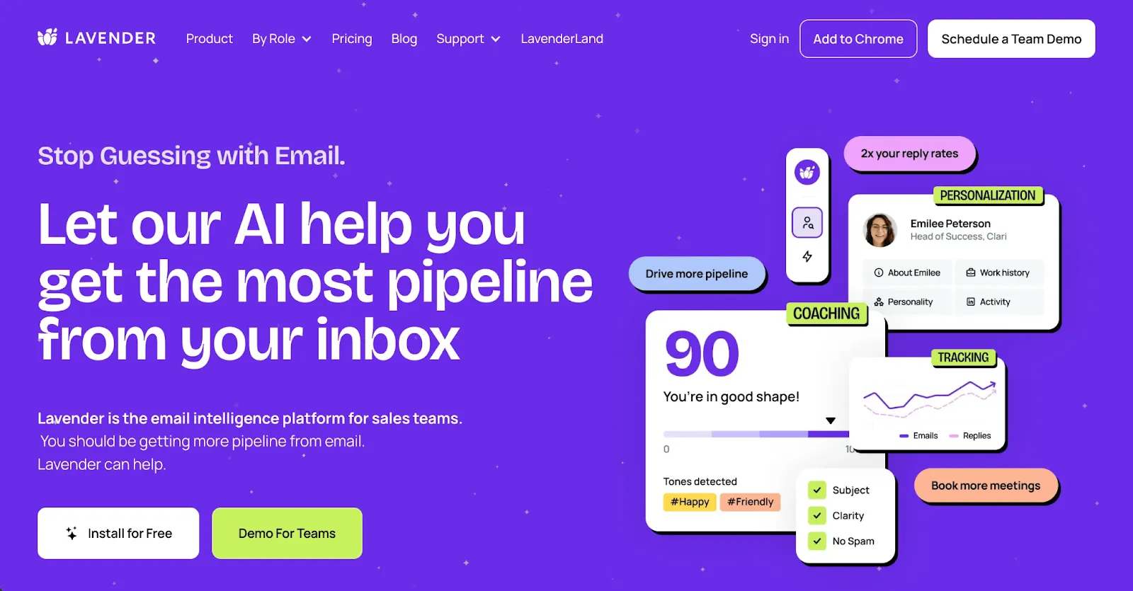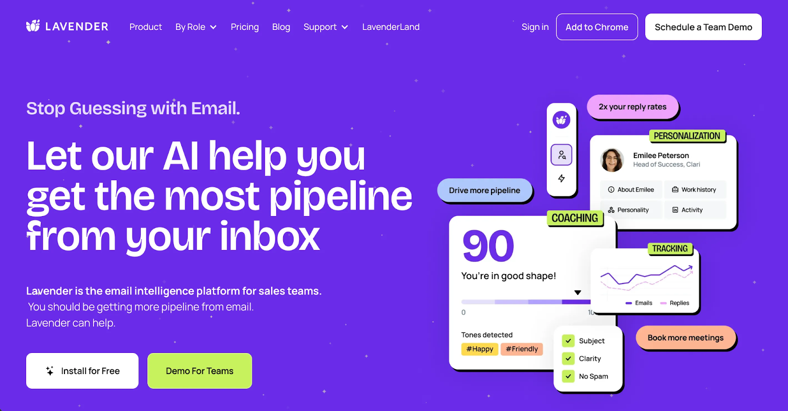 Lavender’s AI coach evaluates cold email performance, tone, and personalization to help teams craft outreach that converts.
