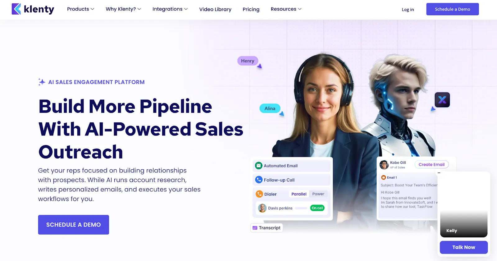 Key features include cadence automation, integrated dialers, and SDRx—an AI-powered assistant that researches prospects and helps craft personalized messaging. Klenty’s focus on high-volume, consistent execution makes it ideal for teams needing to balance phone-heavy outbound with digital channels.