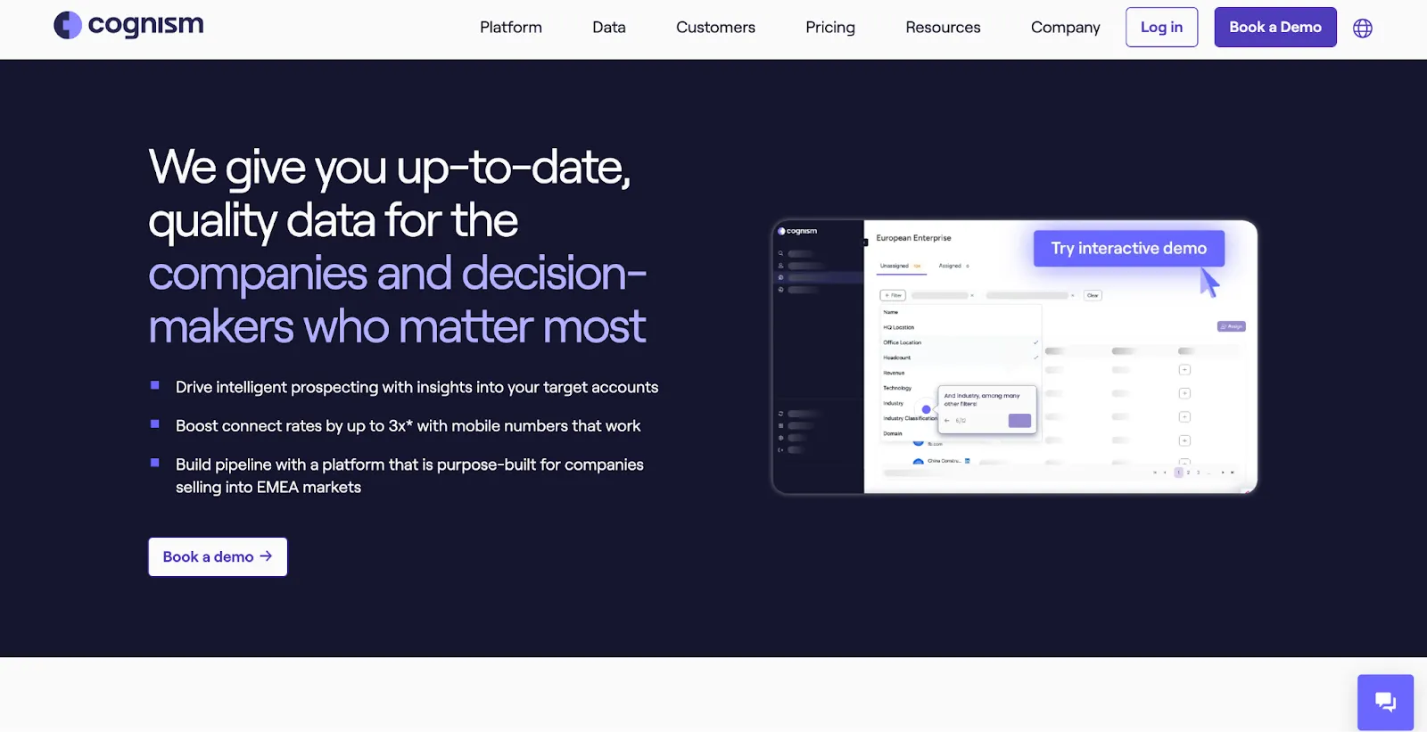 The platform also integrates with Bombora to bring behavioral intent data into targeting workflows, identifying companies that are actively researching relevant topics. Cognism’s focus on compliant sourcing lets revenue teams prospect confidently while keeping data updated across international markets.