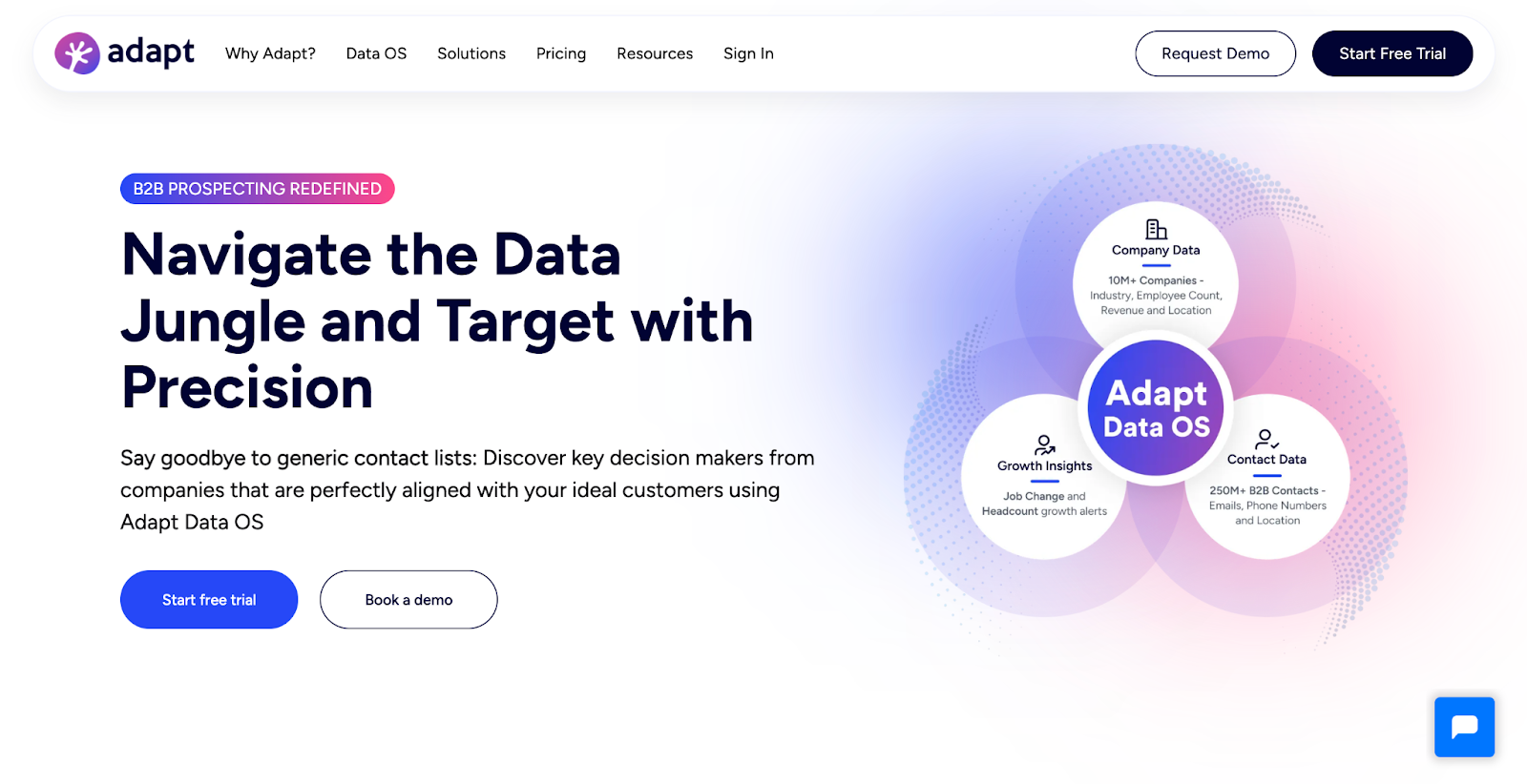 Adapt.io provides targeted B2B prospecting with filters for seniority, role, and company technology. It integrates with major CRMs, helping teams build precise outreach lists fast. Adapt’s clean UI allows reps to search and enrich without technical complexity.