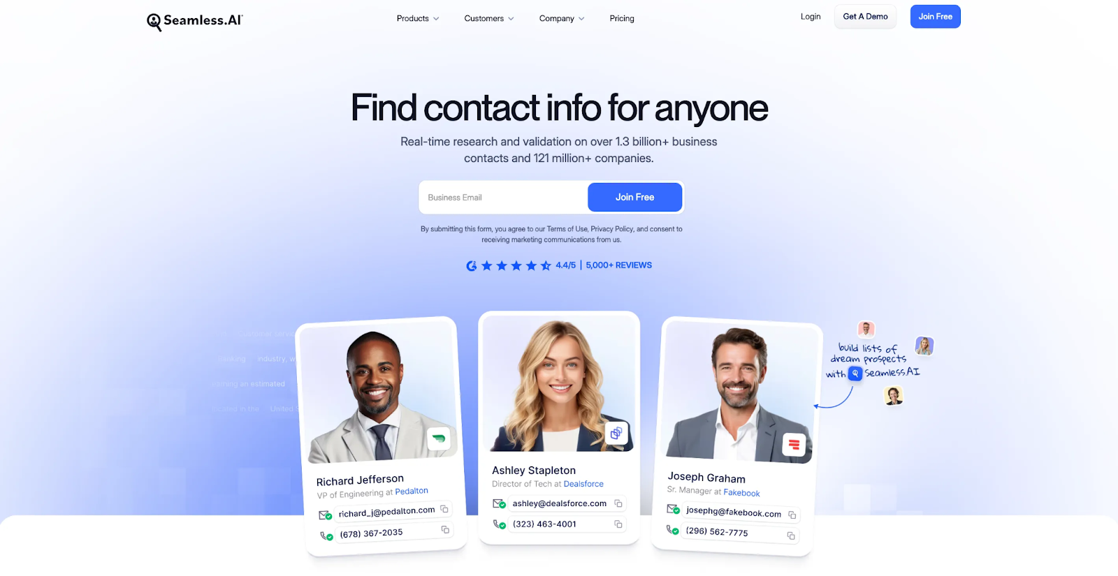 Seamless.AI uses automation and machine learning to surface accurate contact data as you search. The platform validates results continuously and integrates with major CRMs to keep pipelines fresh. It’s ideal for teams needing constant data upkeep and lead expansion across channels.