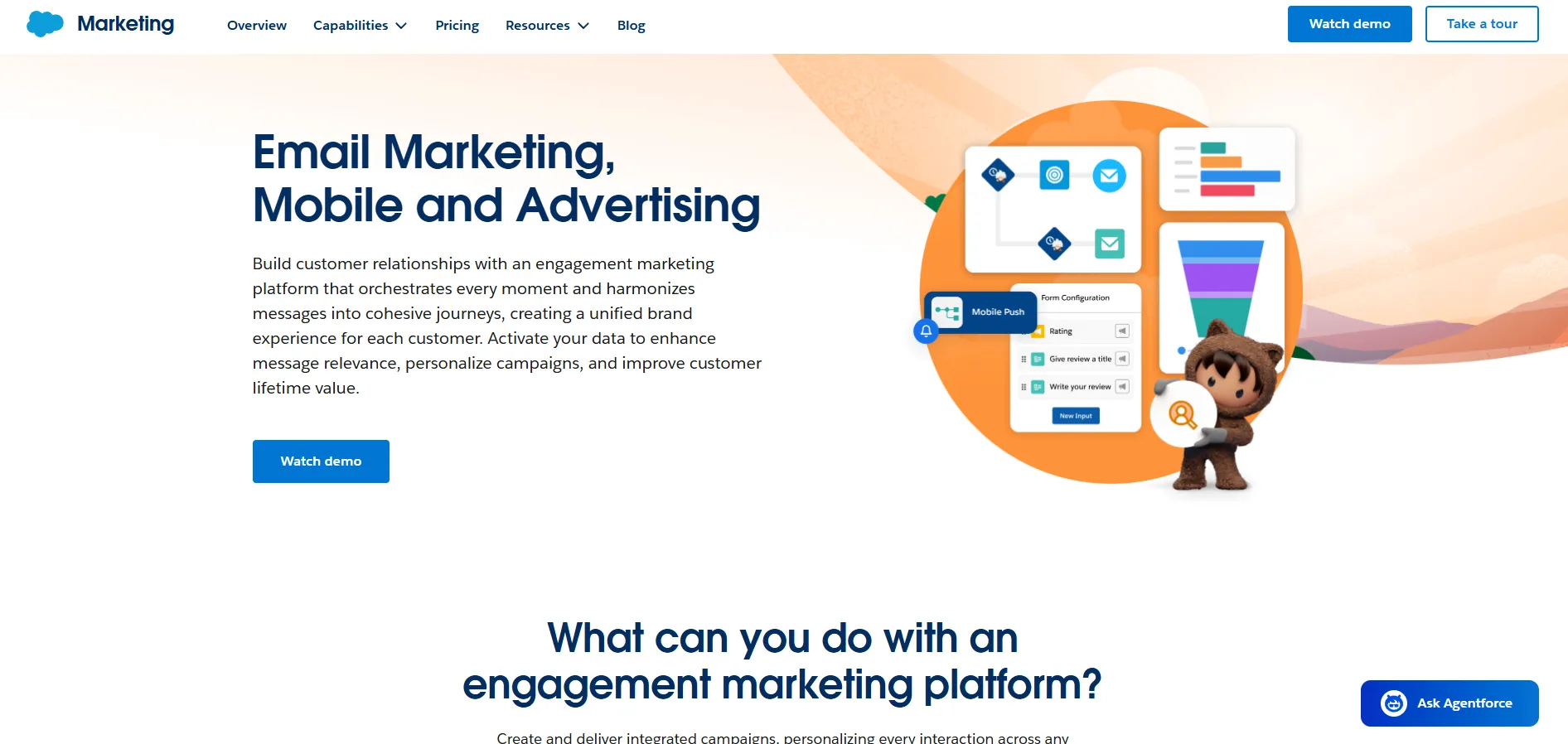 Marketo Engage offers predictive, multi‑touch lead scoring for high‑volume B2B organizations. It pulls from behavioral, firmographic, and third‑party intent signals to map engagement patterns throughout the buyer journey.