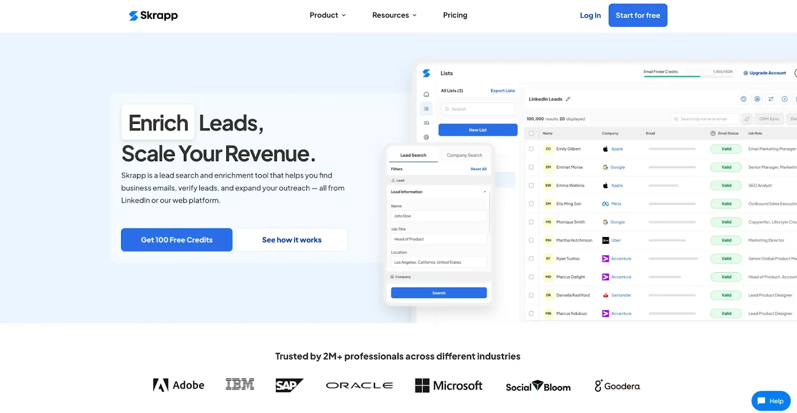 Skrapp offers a scalable email search for sales and marketing teams using company websites.