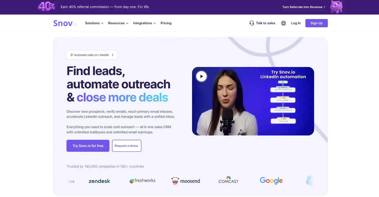 Snov.io combines email search, verification, and CRM automation in one platform. Users can create email sequences, track deliverability, and enrich lead data without switching tools.