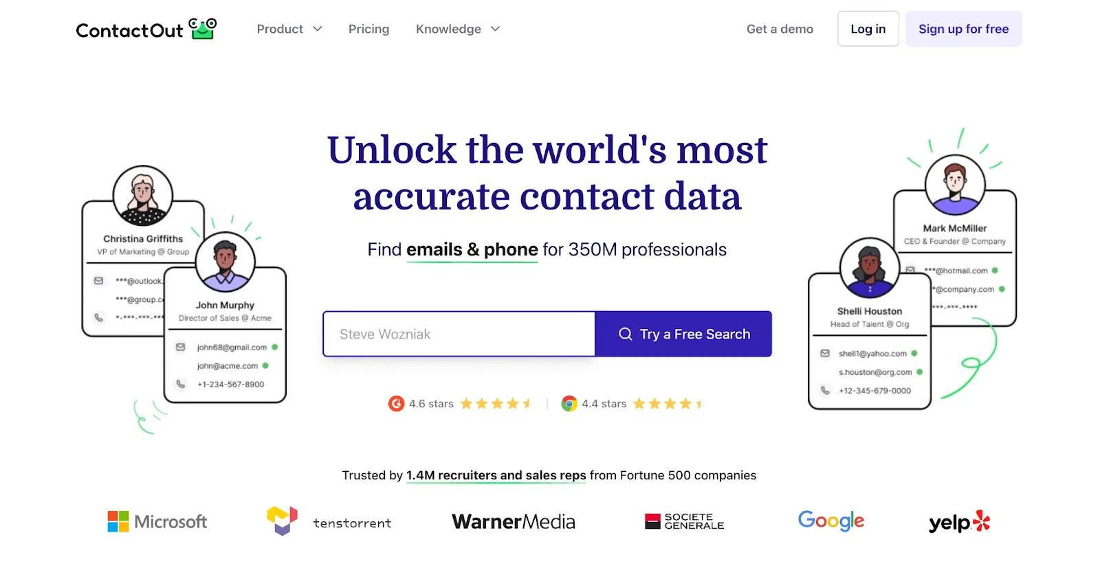 Best for: Finding verified business email addresses and phone numbers. Built for sales teams and recruiters focused on accurate B2B contact data.