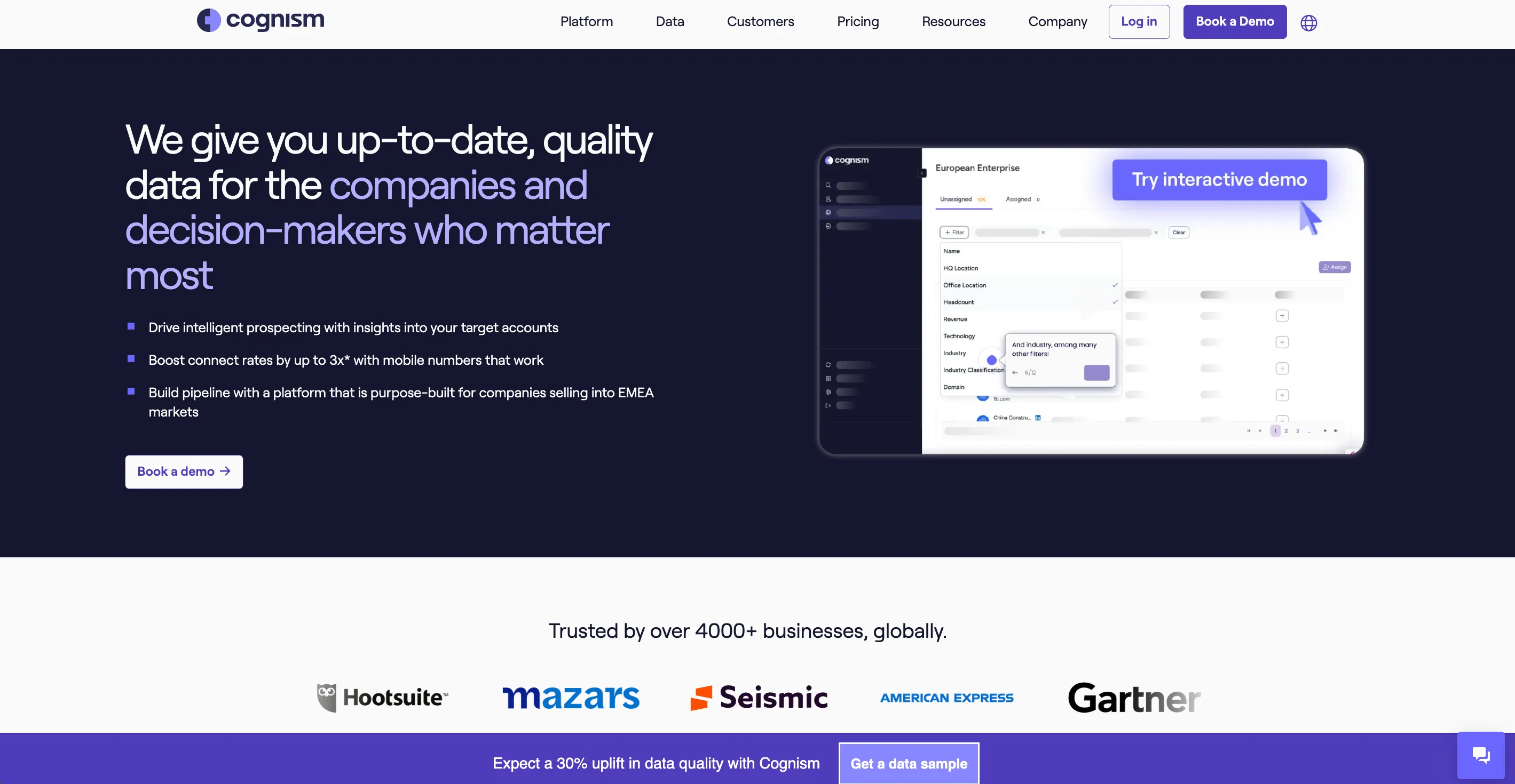 Cognism offers B2B contact data with a focus on GDPR compliance, making it ideal for enterprise teams prospecting into European markets. It provides phone-verified mobile numbers and intent data to prioritize high-value accounts.