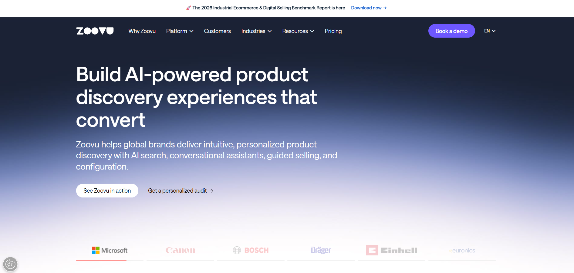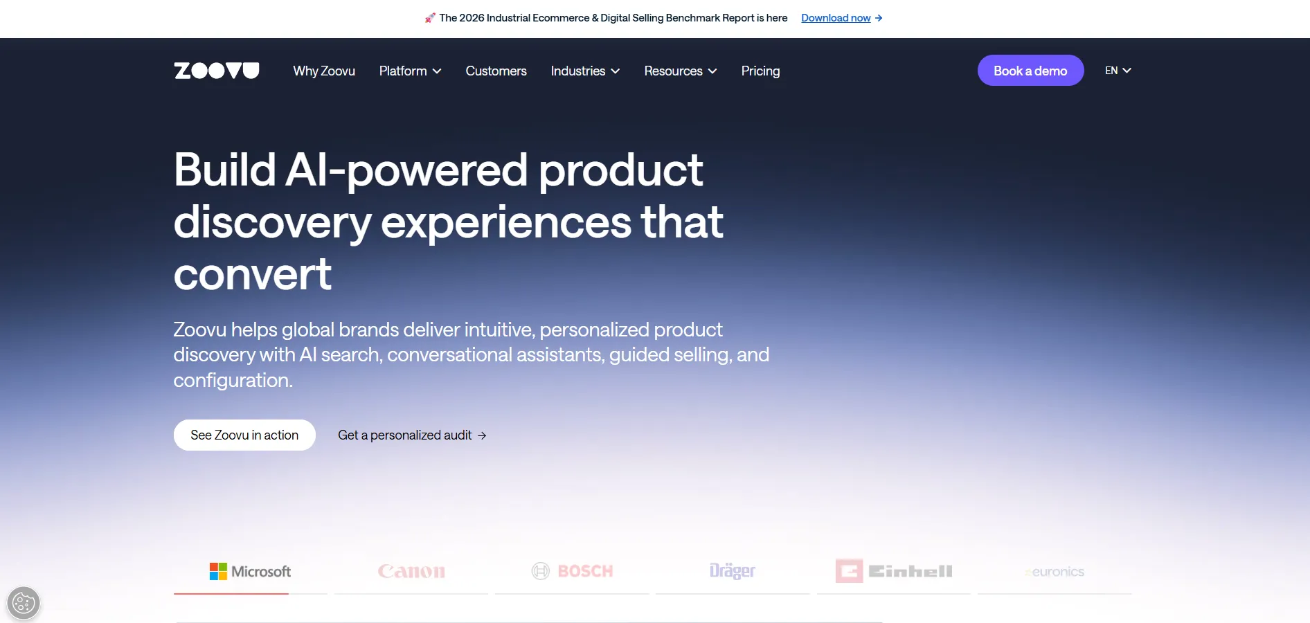 Zoovu specializes in AI-driven product discovery for B2B and B2C ecommerce, helping customers find suitable products through conversational assistants and visual configurators. The platform transforms complex product catalogs into guided buying experiences that increase conversion rates and reduce decision fatigue.