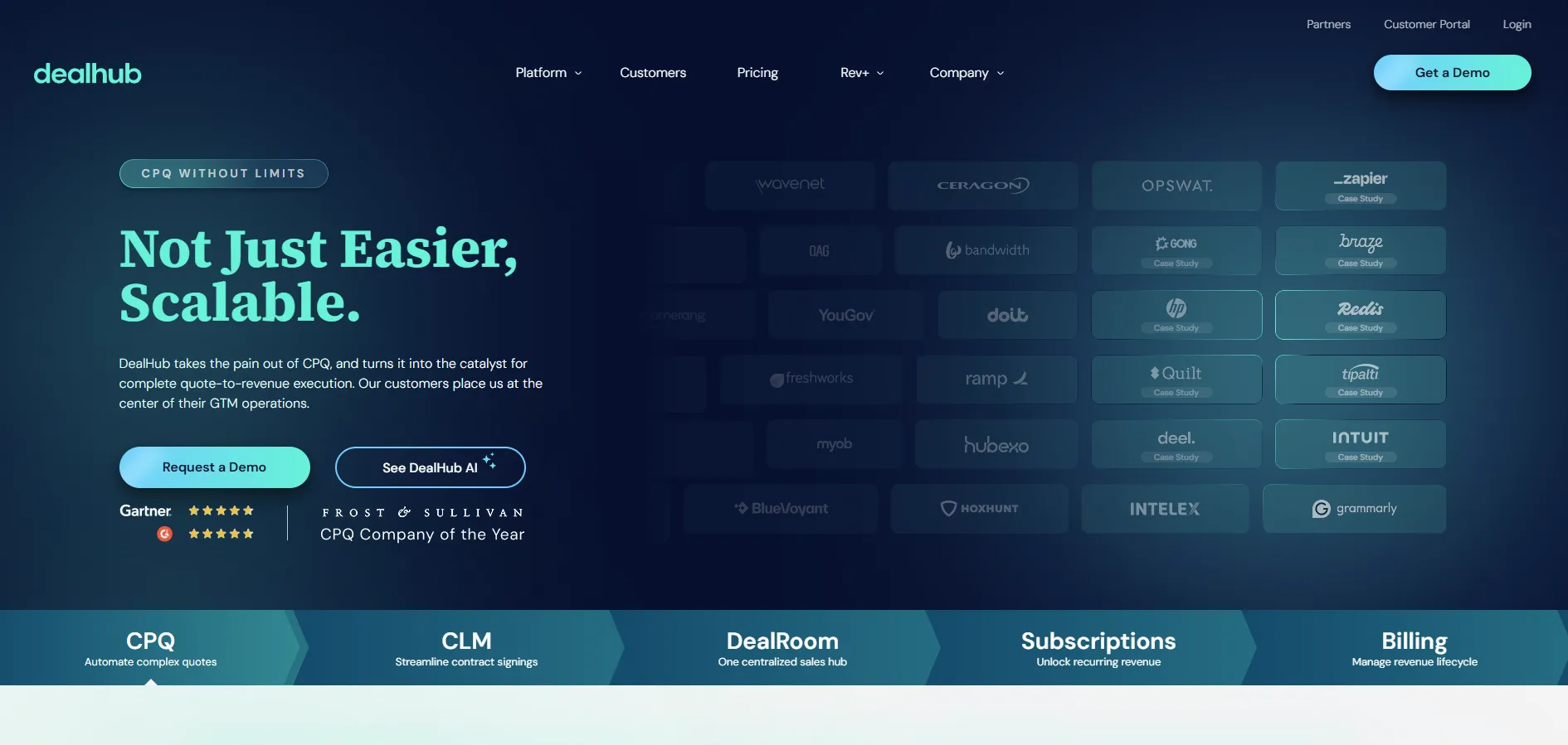 DealHub combines Configure Price Quote, contract management, and subscription billing into a unified revenue platform with guided selling capabilities for SaaS and subscription businesses.
