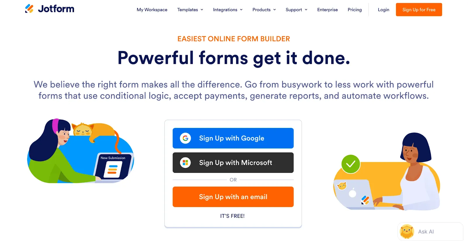 Jotform is one of the most versatile form builders for collecting lead information online. You can embed it into WordPress, connect it to CRMs, or integrate with email marketing platforms like Mailchimp.