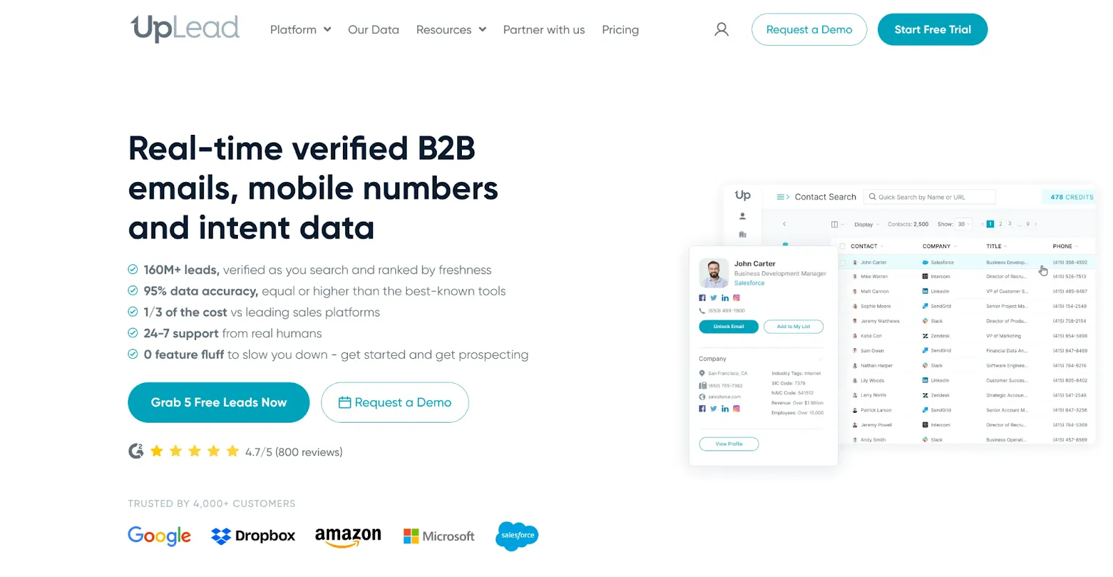 UpLead is more than a capture tool — it’s a visitor identification tool for lead capture that connects your website or event data to verified contact databases.