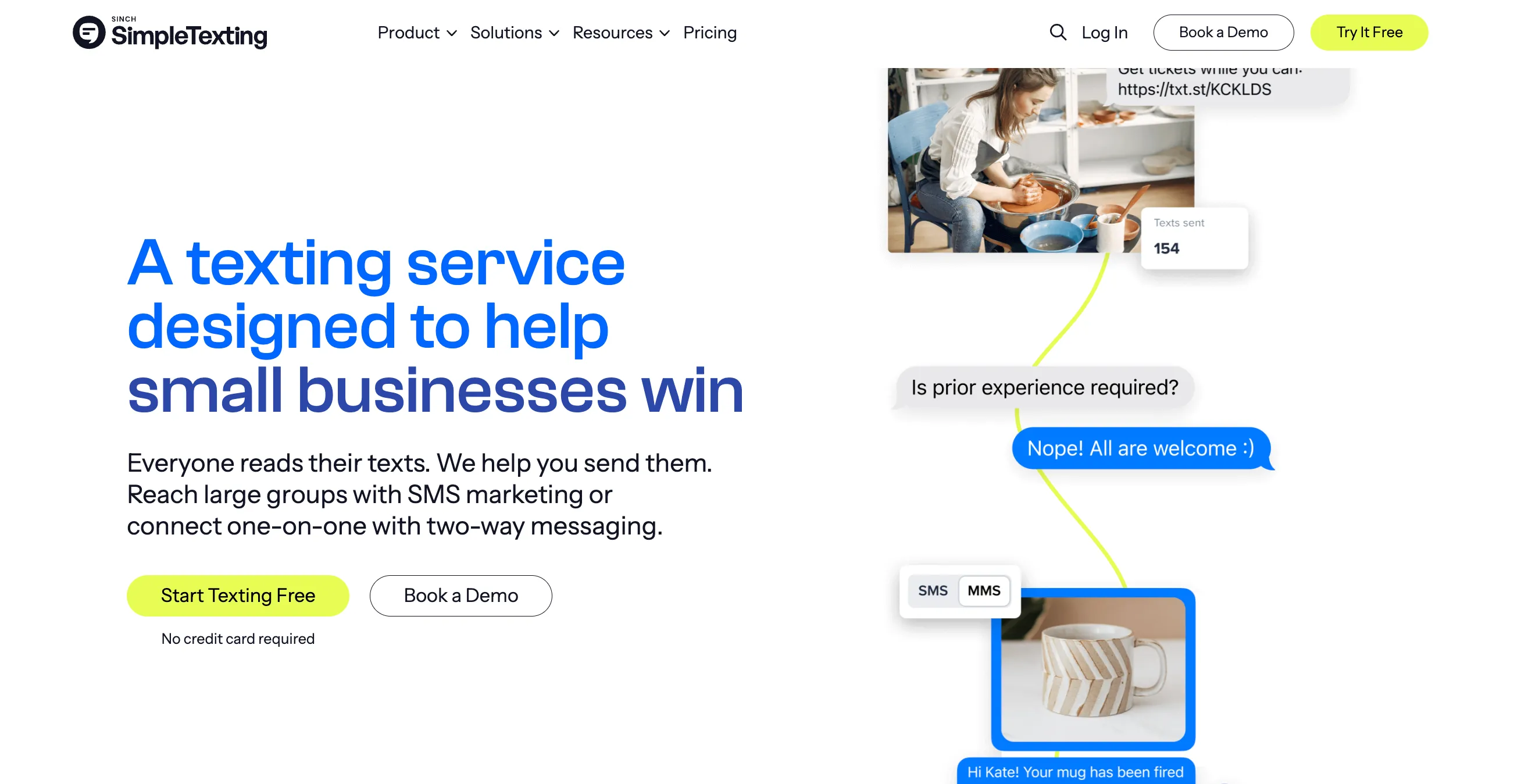 SimpleTexting enables SMS campaigns, two-way texting, and autoresponders so teams can reach leads where open rates are highest. Use keywords and short codes to capture subscribers, run polls/surveys for qualification, and trigger follow-ups based on replies. Strengths include speed, high deliverability for time-sensitive messages (reminders, promos), and approachable pricing for local and SMB use. Compliance is critical; build clear opt-in flows and honor opt-outs to meet regulations. SMS is concise by nature; pair it with landing pages or email for richer storytelling.