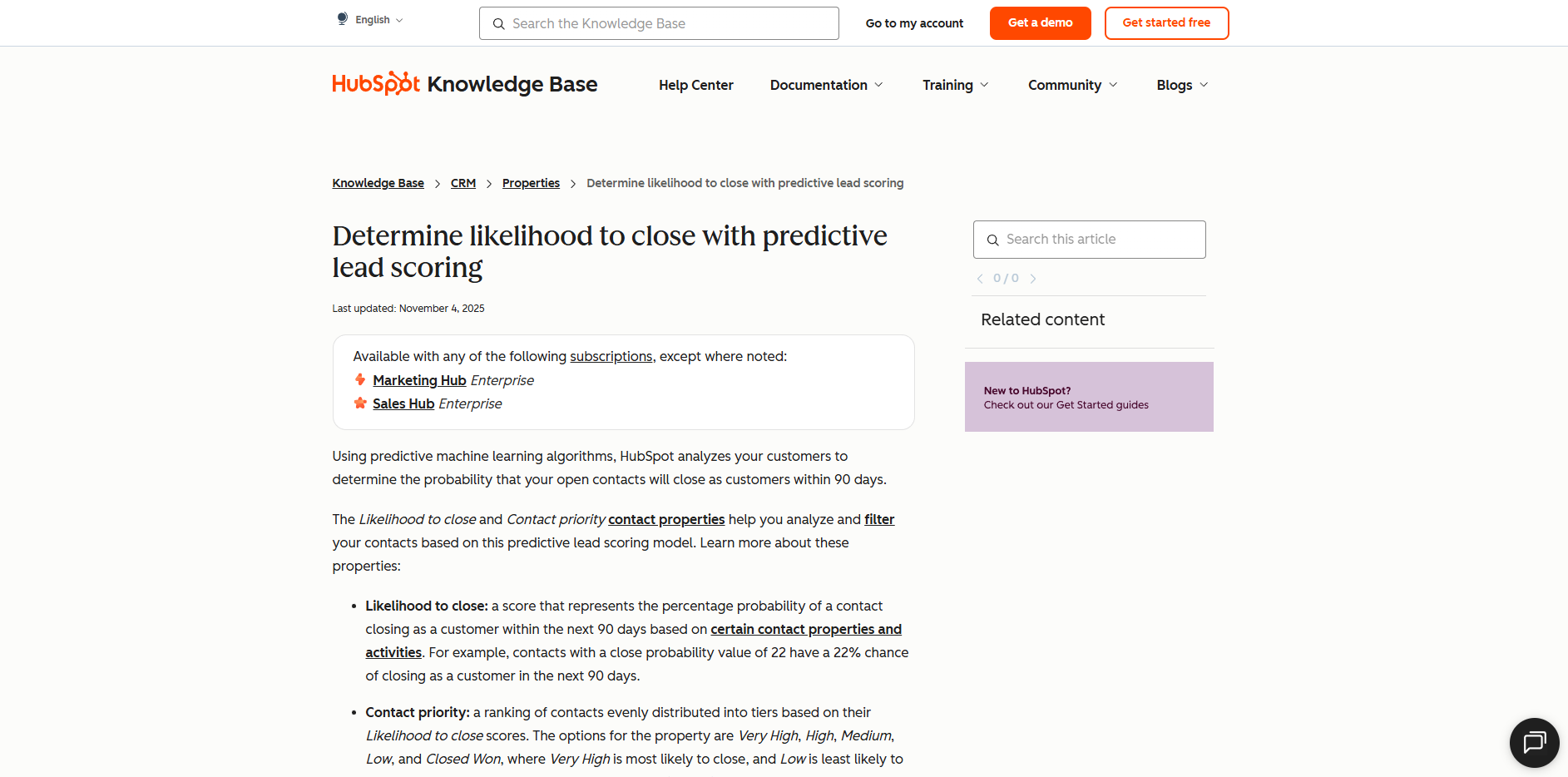 HubSpot Predictive Lead Scoring uses machine learning to evaluate CRM data and predict which contacts are most likely to convert, offering GTM teams automated lead prioritization and workflow triggers.