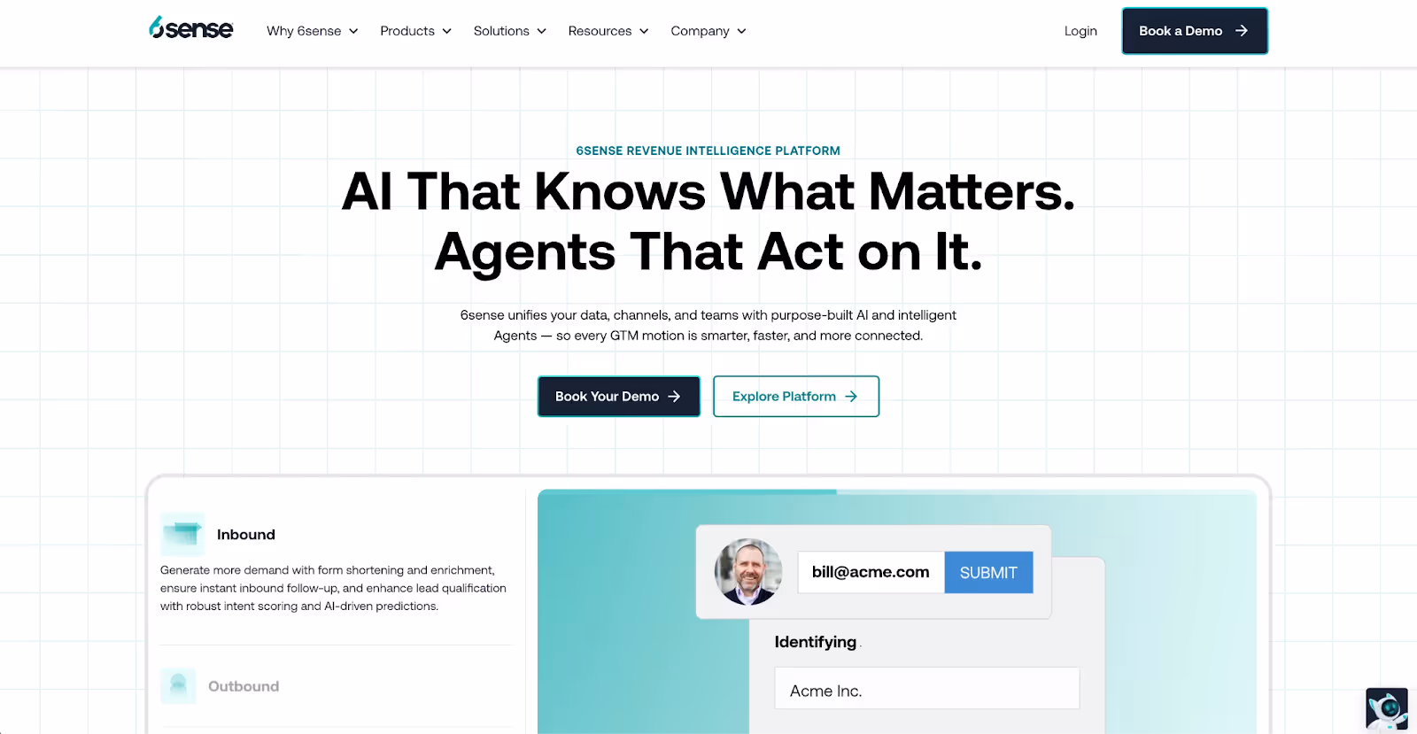 Features: 6sense combines intent data, behavioral analytics, and AI forecasting to help revenue teams prioritize which accounts are most likely to convert.