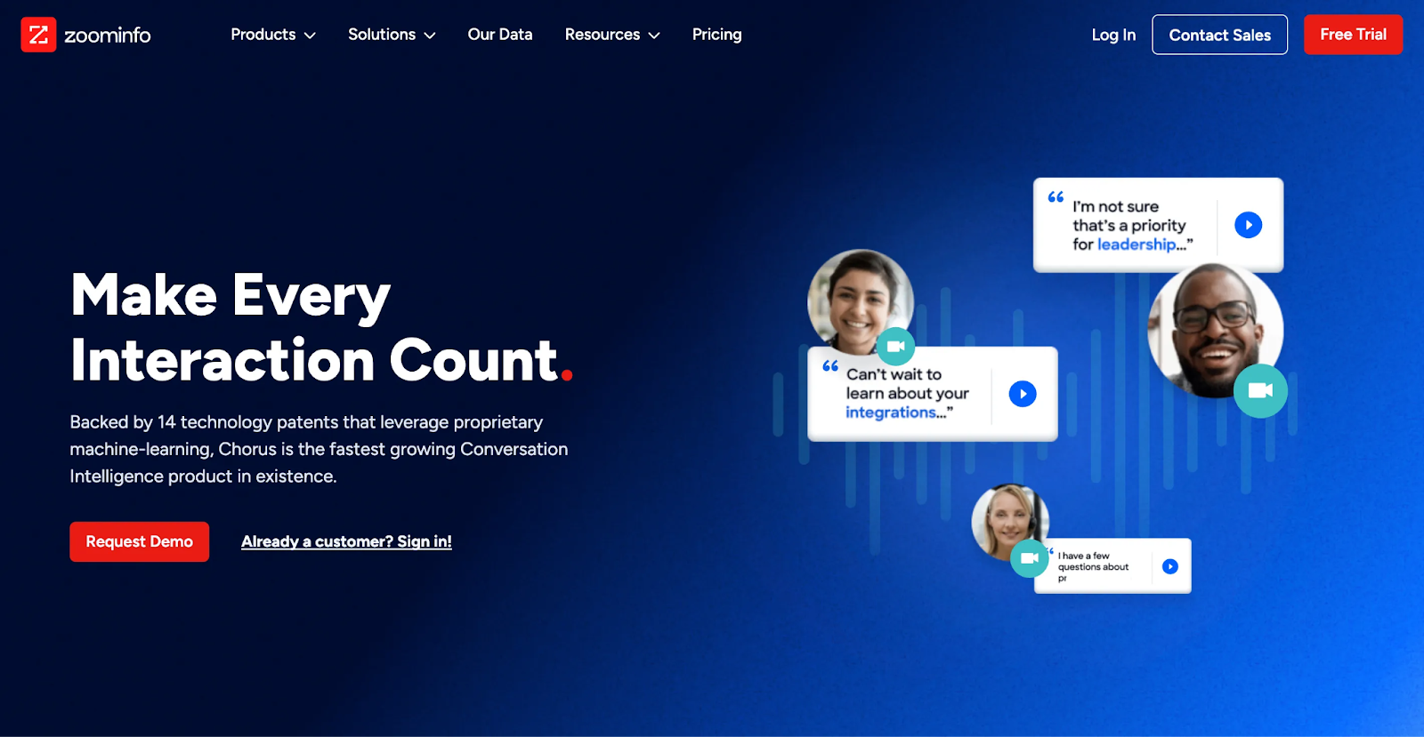 Chorus.ai records and analyzes meetings to identify trends, objections, and opportunities.