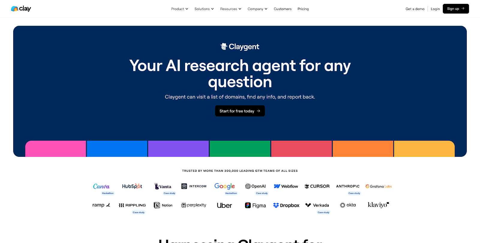 Clay's AI agent, Claygent, is a specialized AI research agent designed to find and report back on any question by visiting a list of domains. It is not a fully autonomous sales agent but rather a powerful tool for GTM teams to gather unique data and generate targeted insights for their campaigns. Claygent can interact with websites, apply filters, fill out forms, and retrieve structured data to enrich lead lists.
